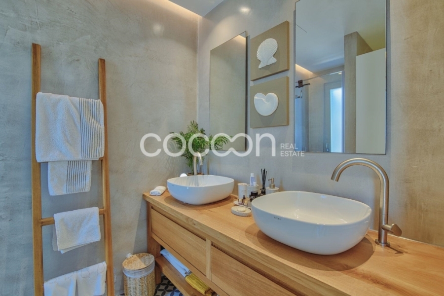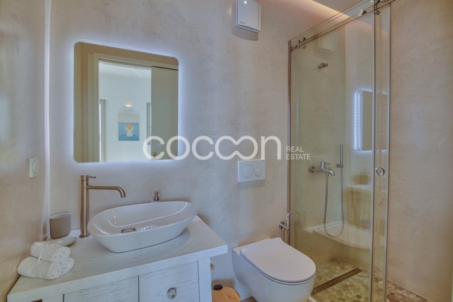 Προσφέρει απόλυτη ιδιωτικότητα, είναι κατασκευασμένη από πέτρα σε μοντέρνο στυλ, συνδυάζοντας το παραδοσιακό στοιχείο των Κυκλάδων με τις σύγχρονες ανέσεις.