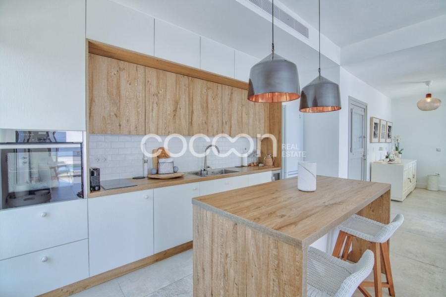Το πάνω επίπεδο φιλοξενεί χώρο υποδοχής, τραπεζαρία, πλήρως εξοπλισμένη κουζίνα και master υπνοδωμάτιο με en suite μπάνιο.