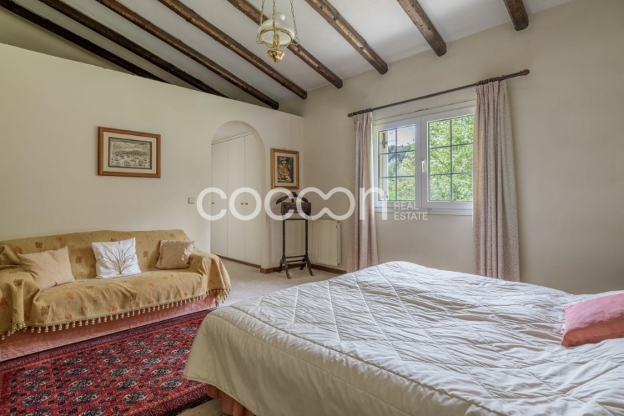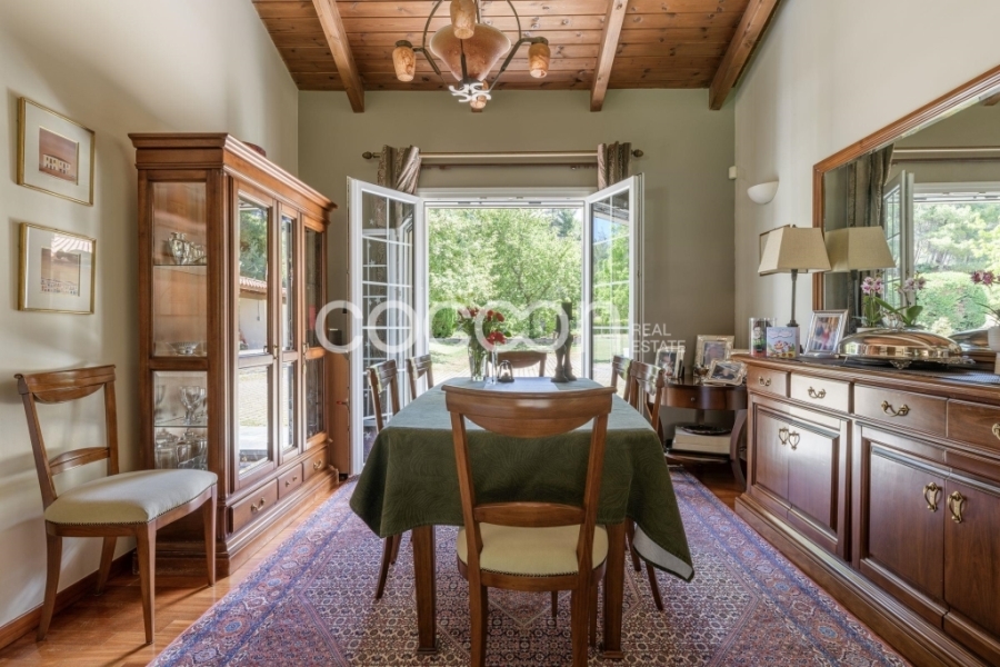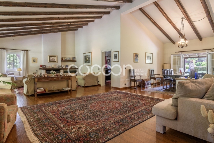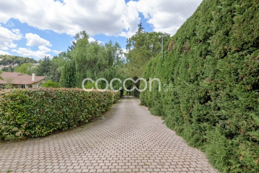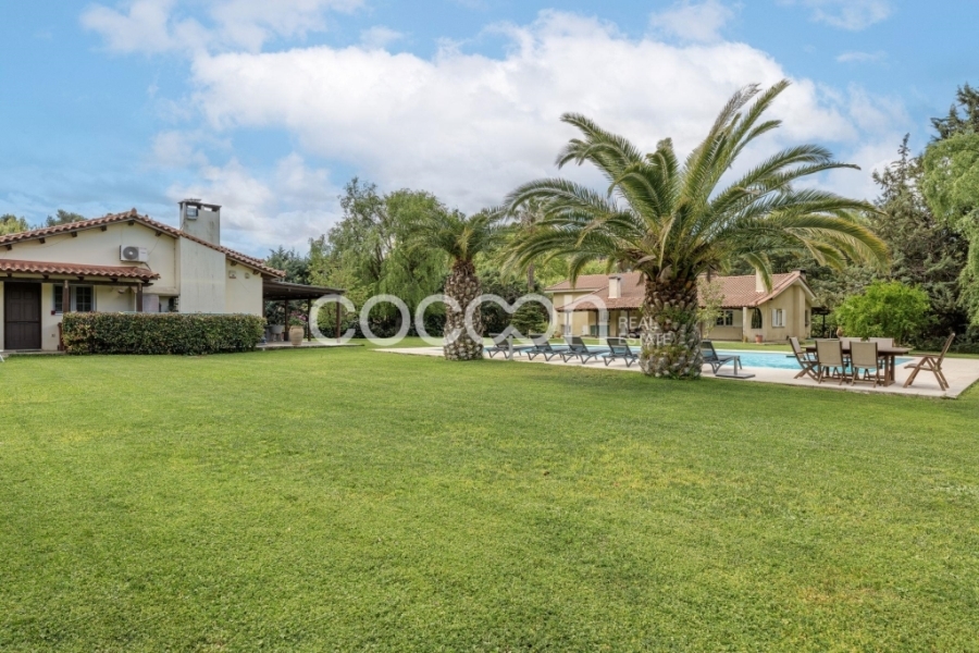 Μέσα σε υπέροχο κτήμα 23 στρεμμάτων (23.365 τ.μ. ), μέρος του οποίου βρίσκεται μέσα στον οικισμό του Αγίου Στεφάνου (6,4 στρέμματα), αναπτύσσονται 2 ανεξάρτητες κατοικίες 376 τ.μ. και 260 τ.μ. αντίστοιχα.