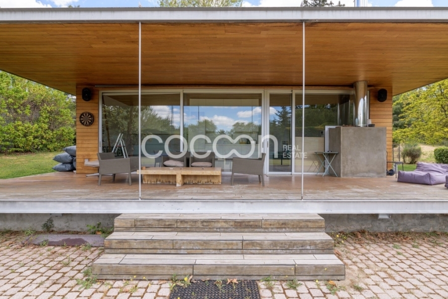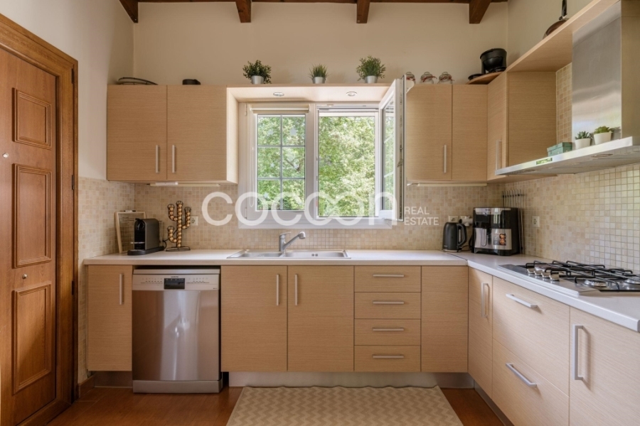 Η σκεπή της κατοικίας διαθέτει φωτοβολταϊκά πάνελ συνδεδεμένα με τον ΔΕΔΔΗΕ.