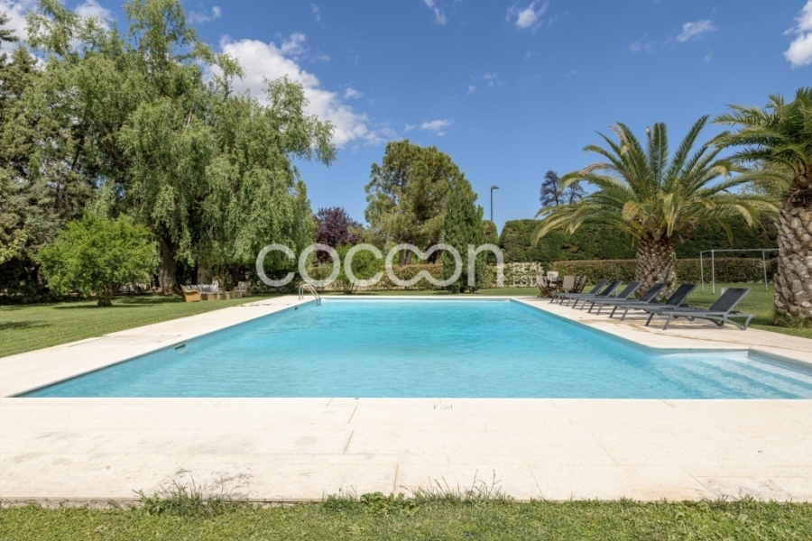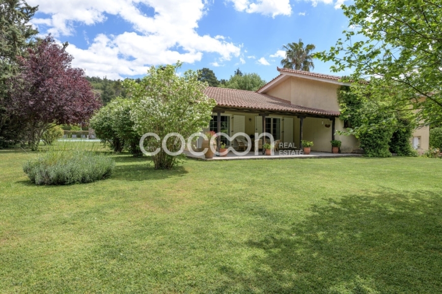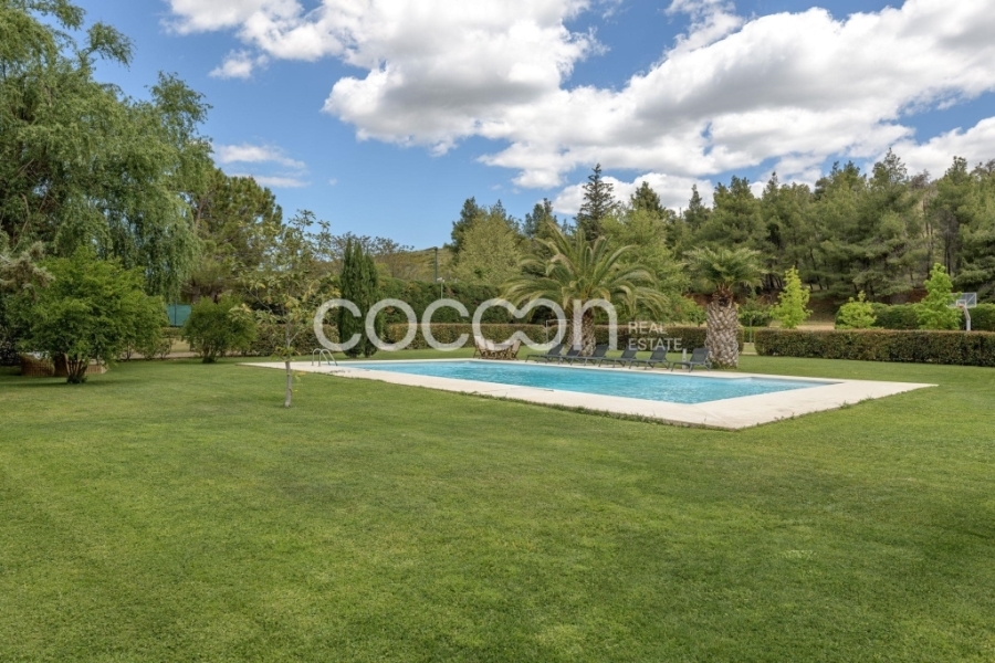 Μεγάλη πισίνα 7,5 x 15μ. βρίσκεται ανάμεσα στις δύο κατοικίες.