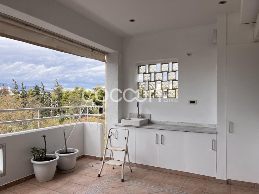 Duplex διαμέρισμα 150τ.μ. στον 4ο όροφο πολυκατοικίας κατασκευής 1996 στο Χαλάνδρι, στη Ρεματιά, σε ήσυχο δρόμο με θέα στο πράσινο.