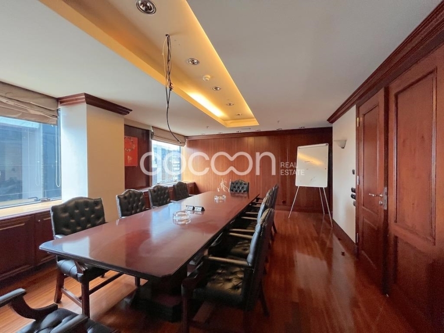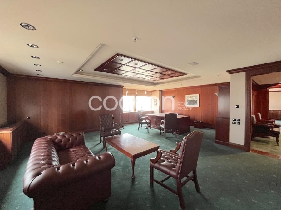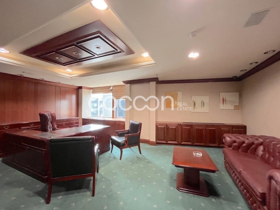 Παραδίδεται με τα έπιπλα (γραφεία και καρέκλες σε στυλ Chesterfield) ή ανεπίπλωτος.