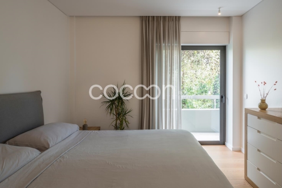 Τα υπνοδωμάτια είναι συνολικά 2 και εξυπηρετούνται από ένα μεγάλο πλήρες μπάνιο και ένα WC επισκεπτών με douche.