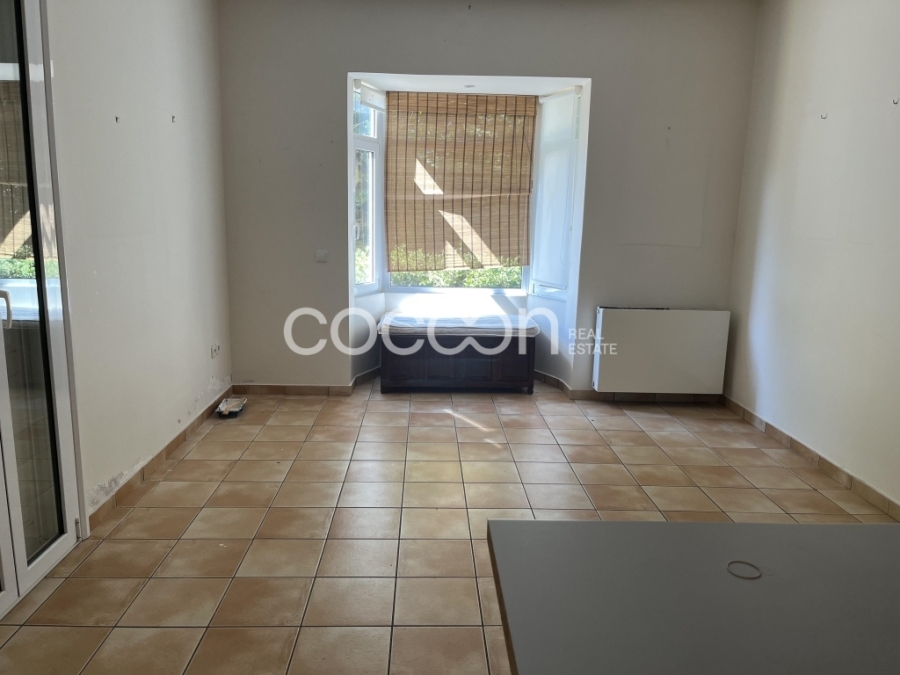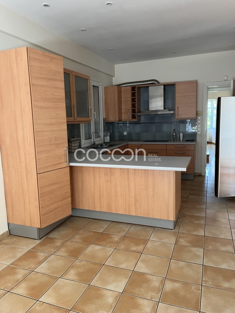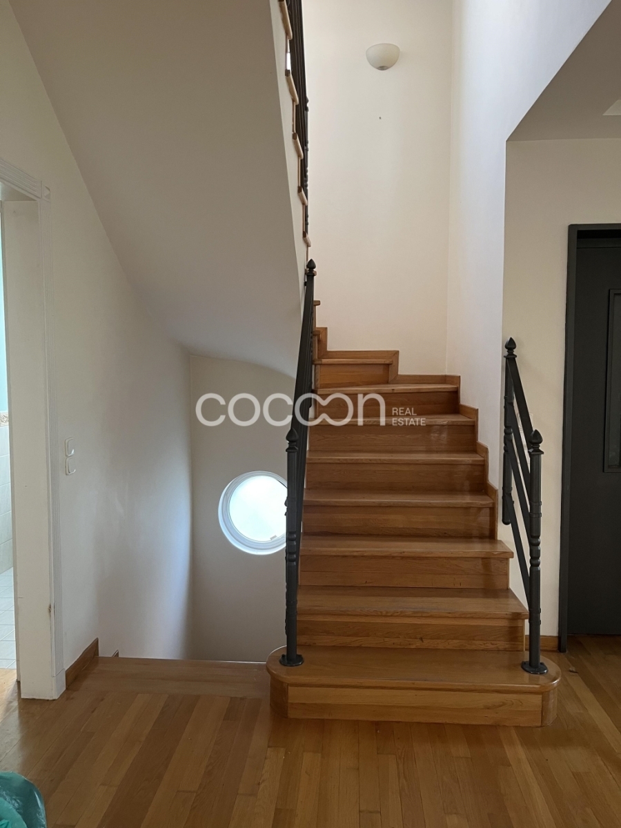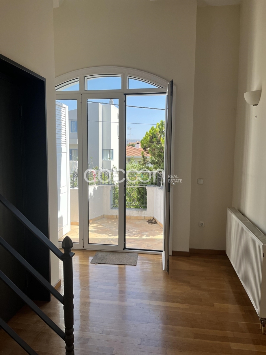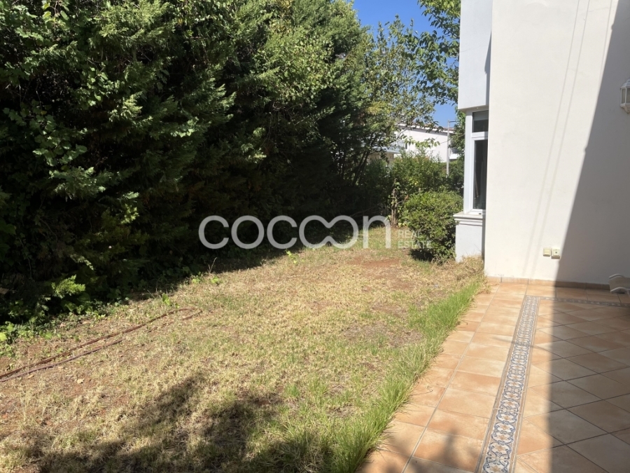 Το ισόγειο διαθέτει ευρύχωρο καθιστικό, μεγάλη κουζίνα με πολύ άνετο χώρο πρόχειρης τραπεζαρίας, και 1 wc επισκεπτών. Αυτό το επίπεδο βγάζει σε όμορφο κήπο με ιδιωτικότητα και χώρο για BBQ και, από τη μεριά της πρόσοψης, βγάζει σε άνετο μπαλκόνι.