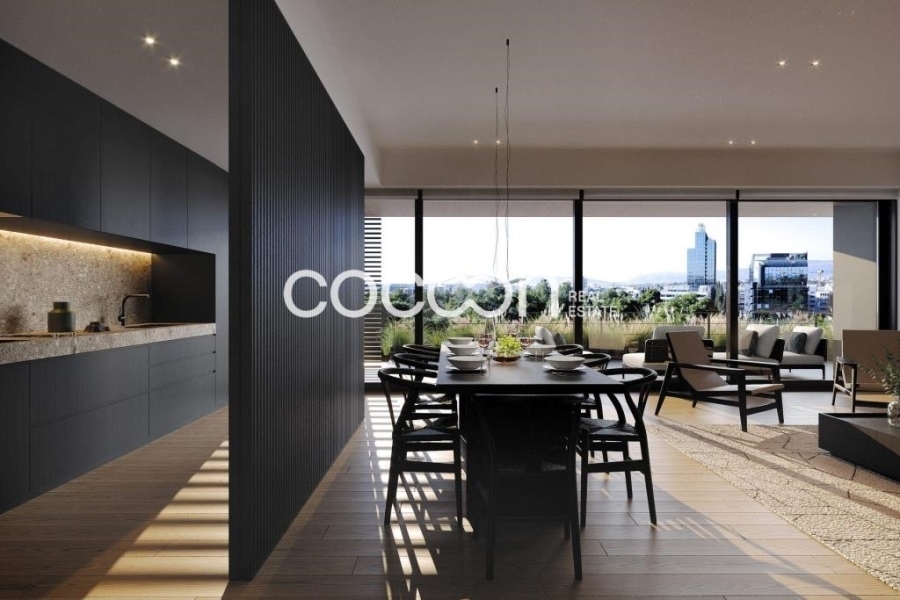 Διαμέρισμα 3ου ορόφου, 142 τ.μ., σε μοντέρνο συγκρότημα κατοικιών στο Μαρούσι, με ανεμπόδιστη θέα σε πάρκο και την πόλη.