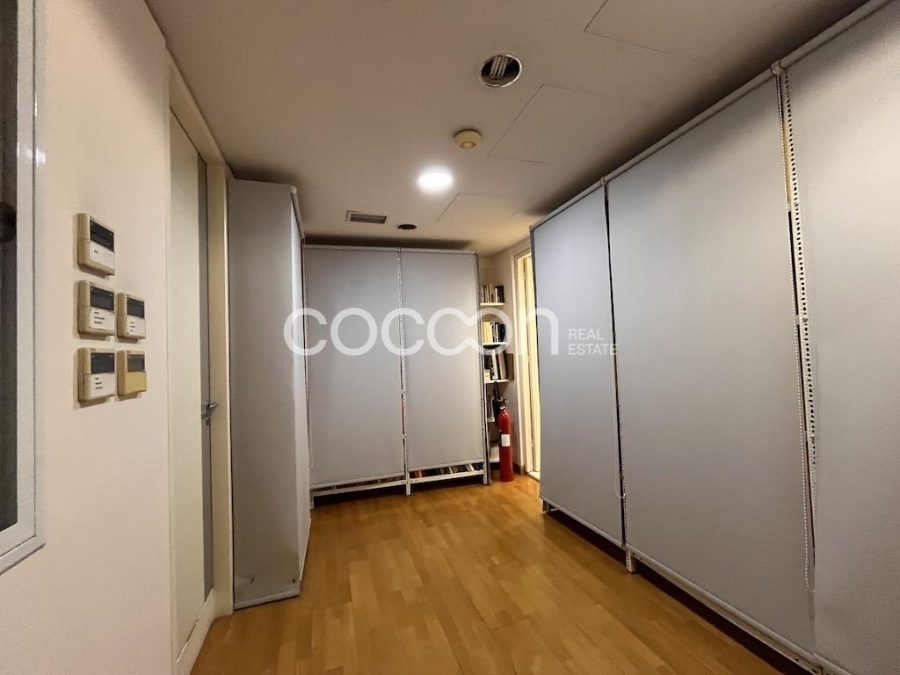 Αποτελείται από 8 κλειστά γραφεία γύρω από έναν κεντρικό χώρο open plan που μπορεί να λειτουργήσει και ως αναμονή και γραμματεία. Επίσης υπάρχουν 2 WC, ένα μπάνιο με douche και νιπτήρα και kitchenette.