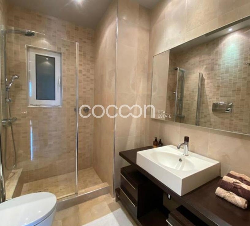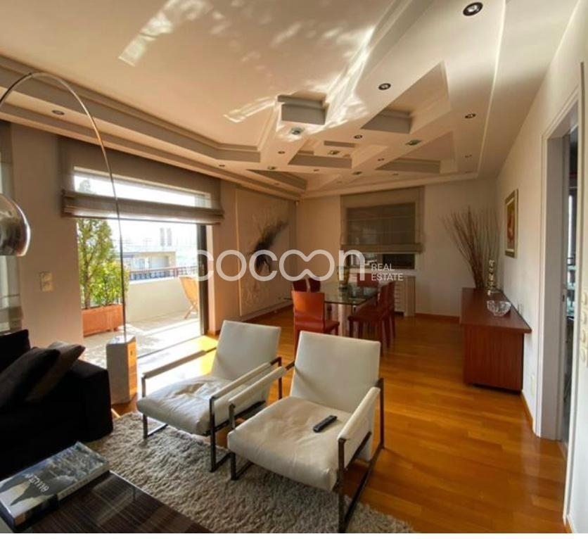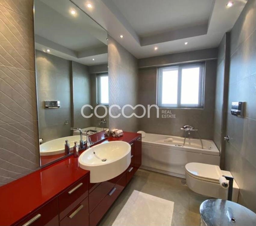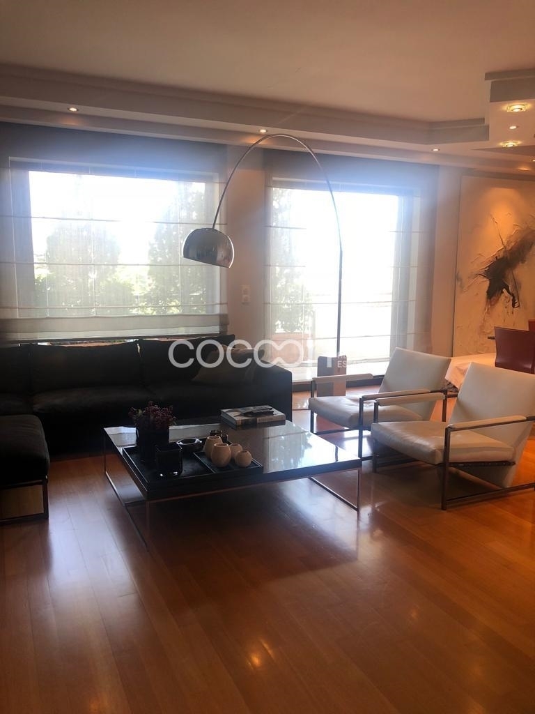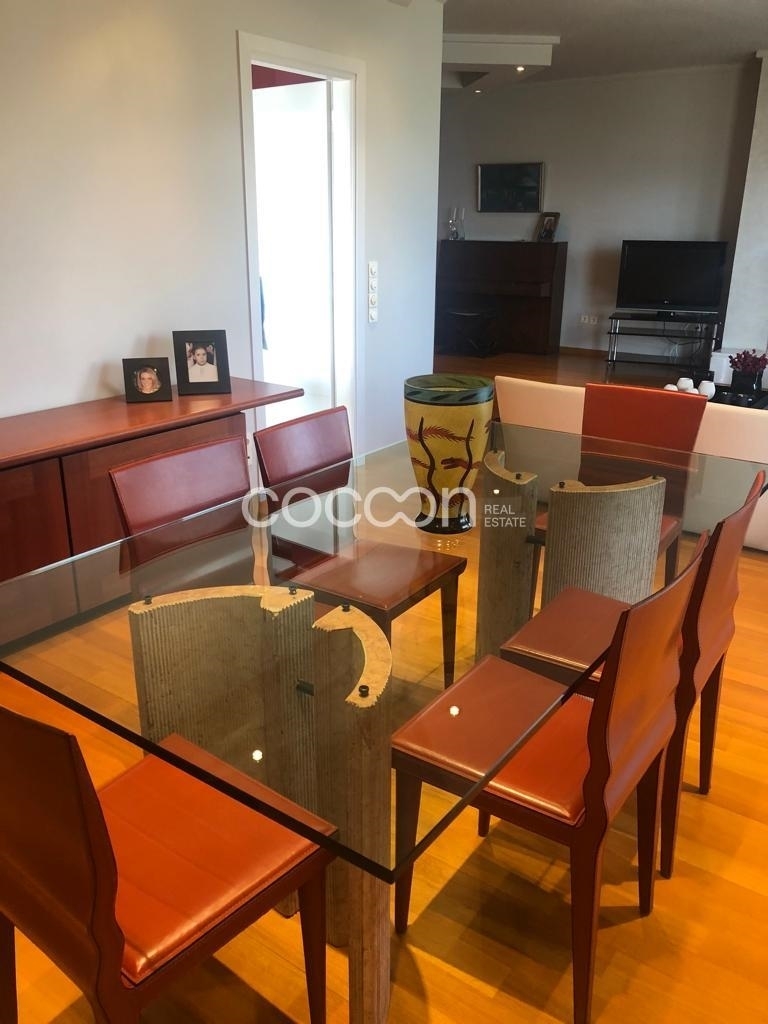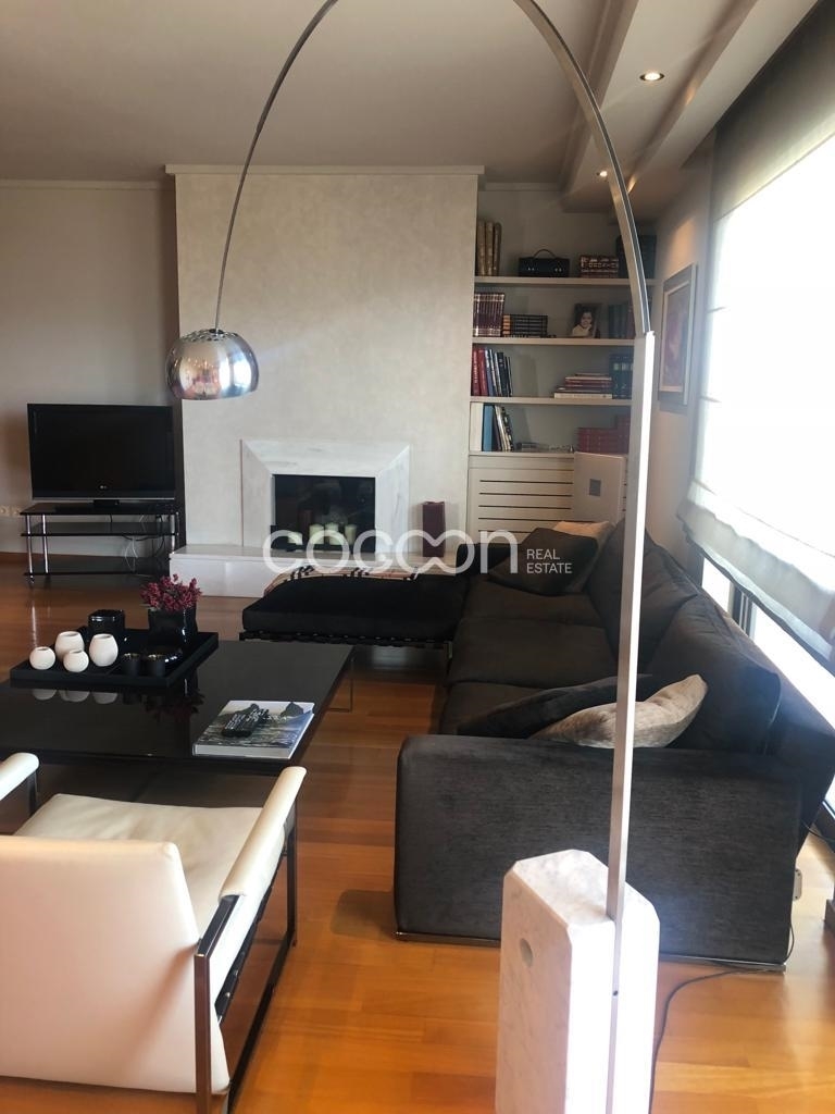 Apartment of 146 sqm, on the 5th floor, luxuriously renovated and furnished, It has 3 bedrooms, 2 bathrooms, large terraces around, fireplace, air conditioning, security door, alarm, CCTV, autonomous heating-gas, parking and storage.