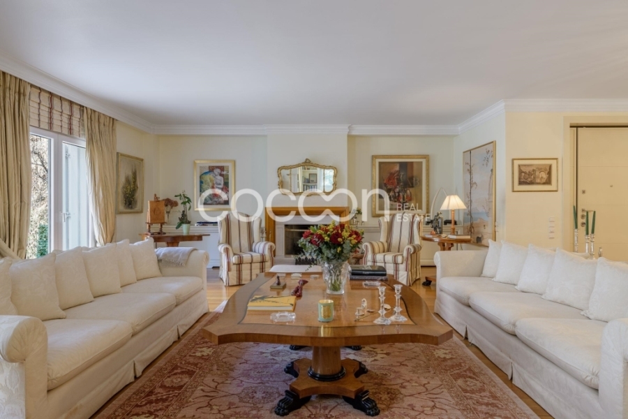 For Sale Detached house, Kifissia ,Politeia 585sq.m ,Ground floor , 3 level/s ,4 Bedroom/s ,5 bath/s , 1 WC , 2 parking , features: Elevator, Security door, Storage room, Fireplace, Playroom, Internal Staircase, Double Glazed Windows, Balcony Cover, Balconies, Mansion, Airy, Roadside, Bright, AirConditioning, Trees, Back yard (Garden), Personal - Natural Gas 1 fireplace/s,  price: 2.500.000€